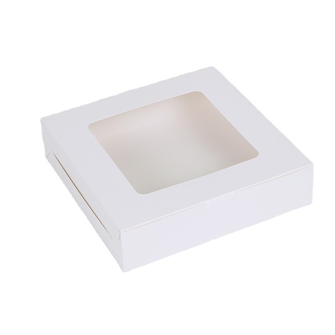 ホットセールケーキボックス10x10x2.5inホワイトベーカリーボックスペストリーケーキボックスウィンドウ付き